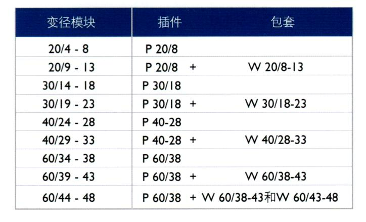 至69.5mm,66种不同尺寸的电缆和管道。翼状插入件有一个与主模块沟槽相吻合的定位键,可以阻止插入件“伸缩”。